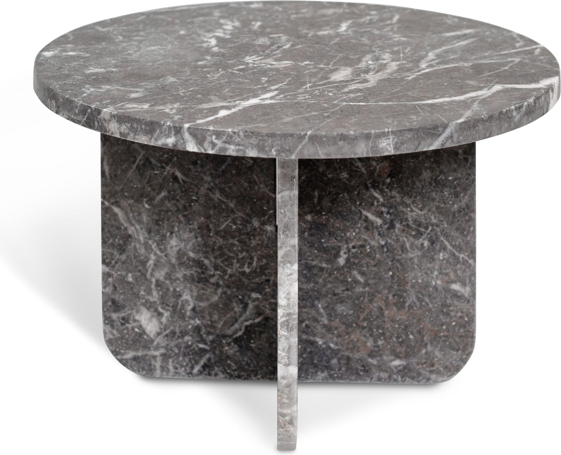 En rund toppskiva med en diameter på 50 cm i vacker grå marmor, avsedd att kombineras med ett underrede.