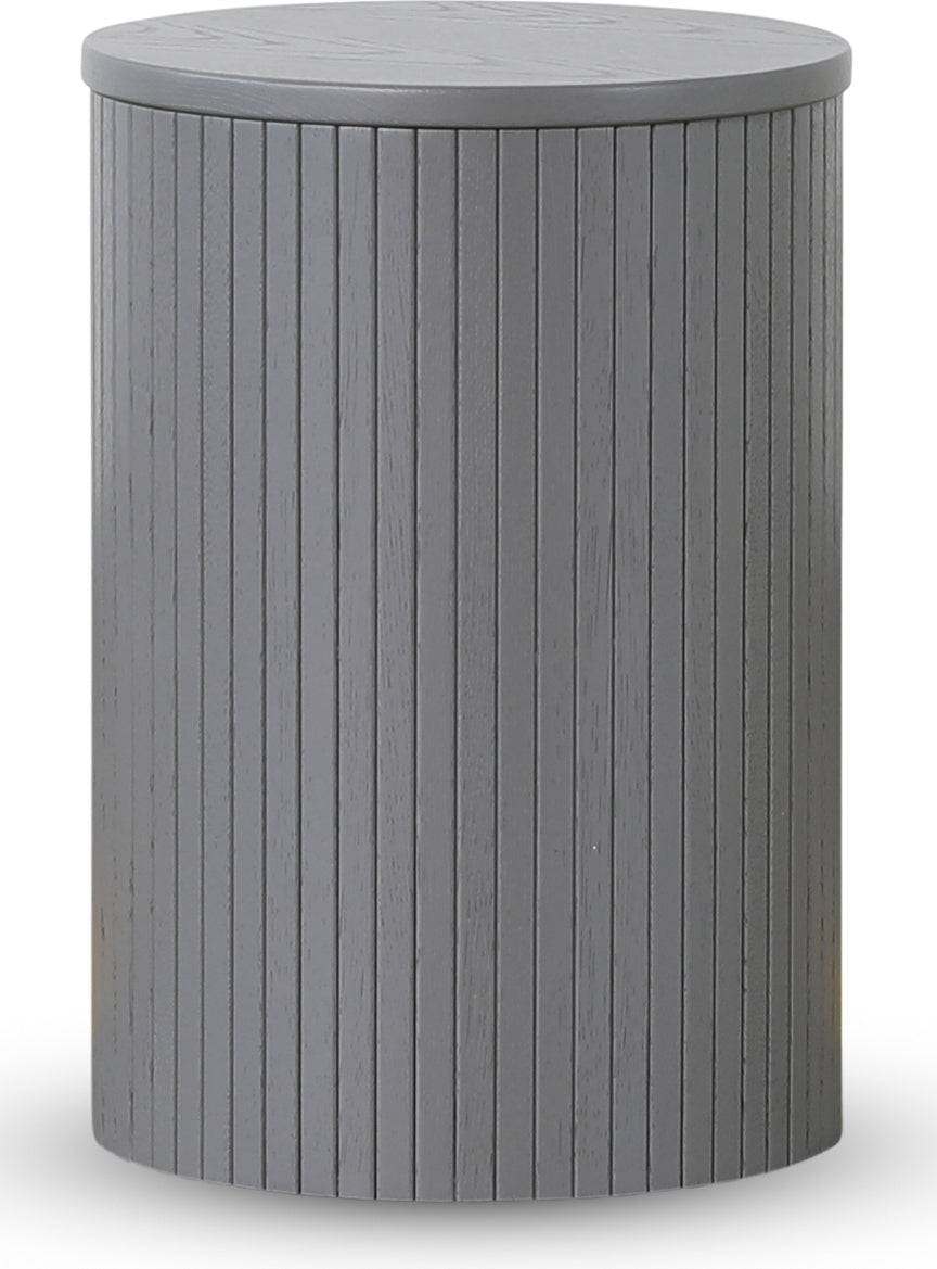 En stilren och minimalistisk piedestal med en rund topp och ett unikt cylinderformat underrede.