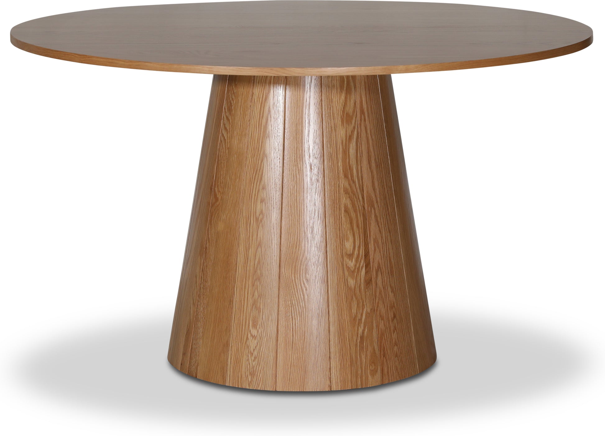 Ett robust och vackert underrede i oljad ek till ett runt matsalsbord. Den konformade foten ger ett stabilt och elegant intryck.