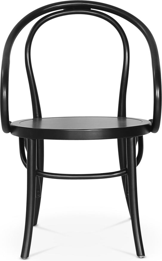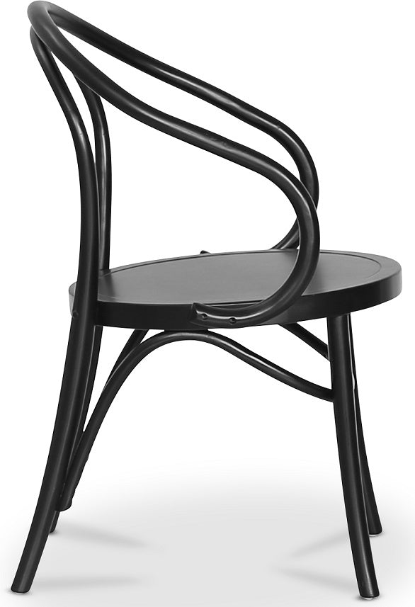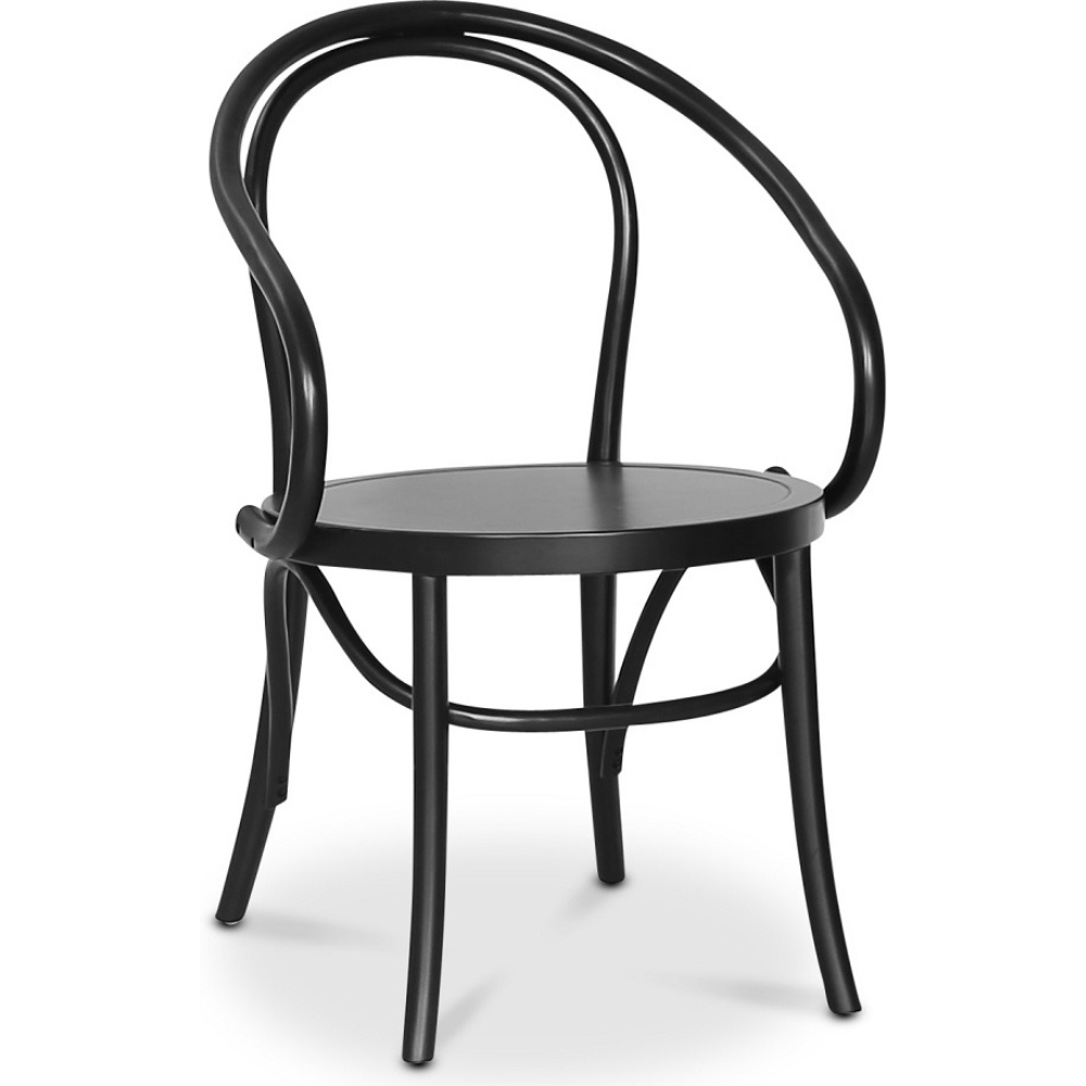 En stilren karmstol i svartlackat böjträ med svart träsits.