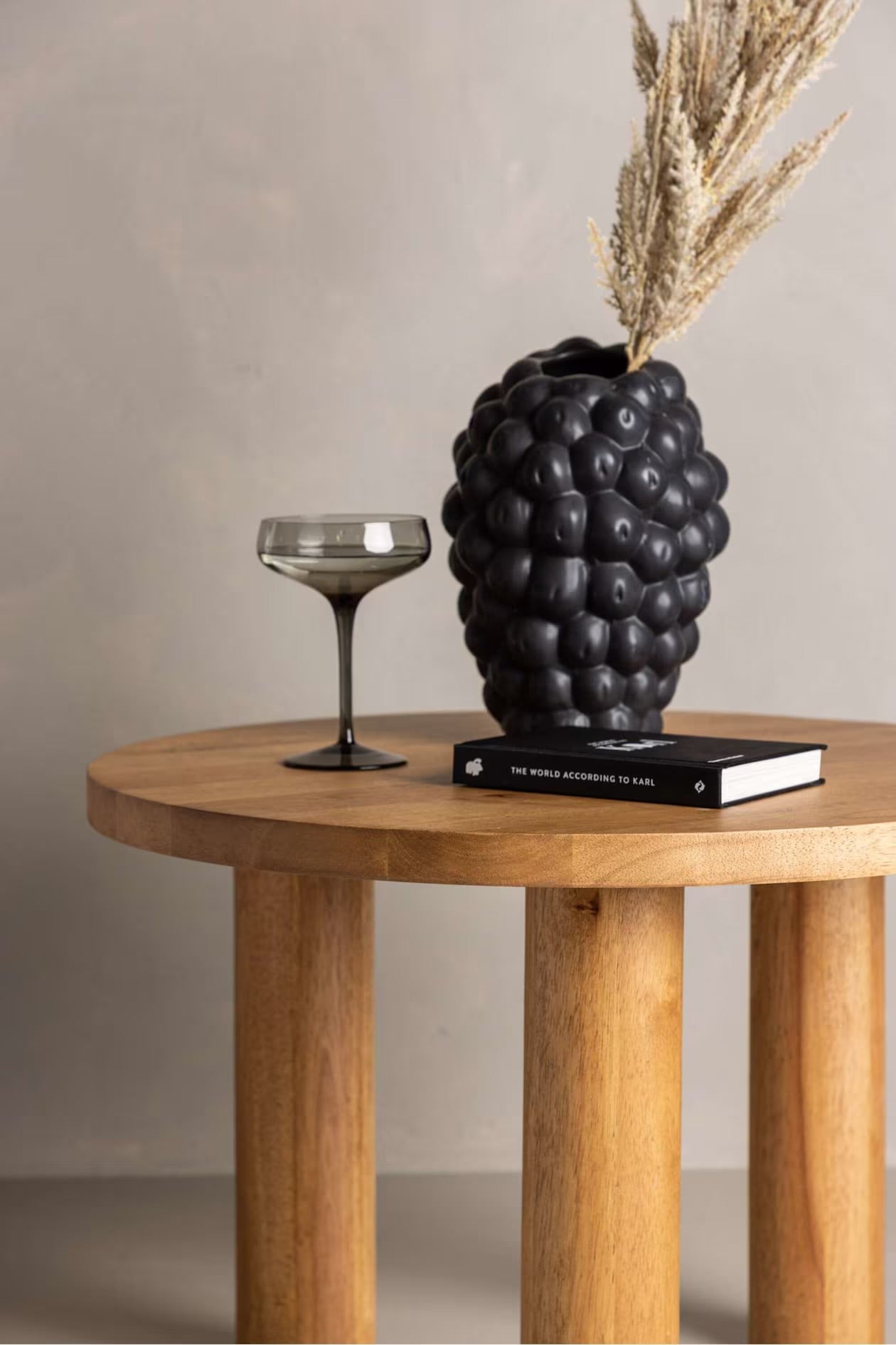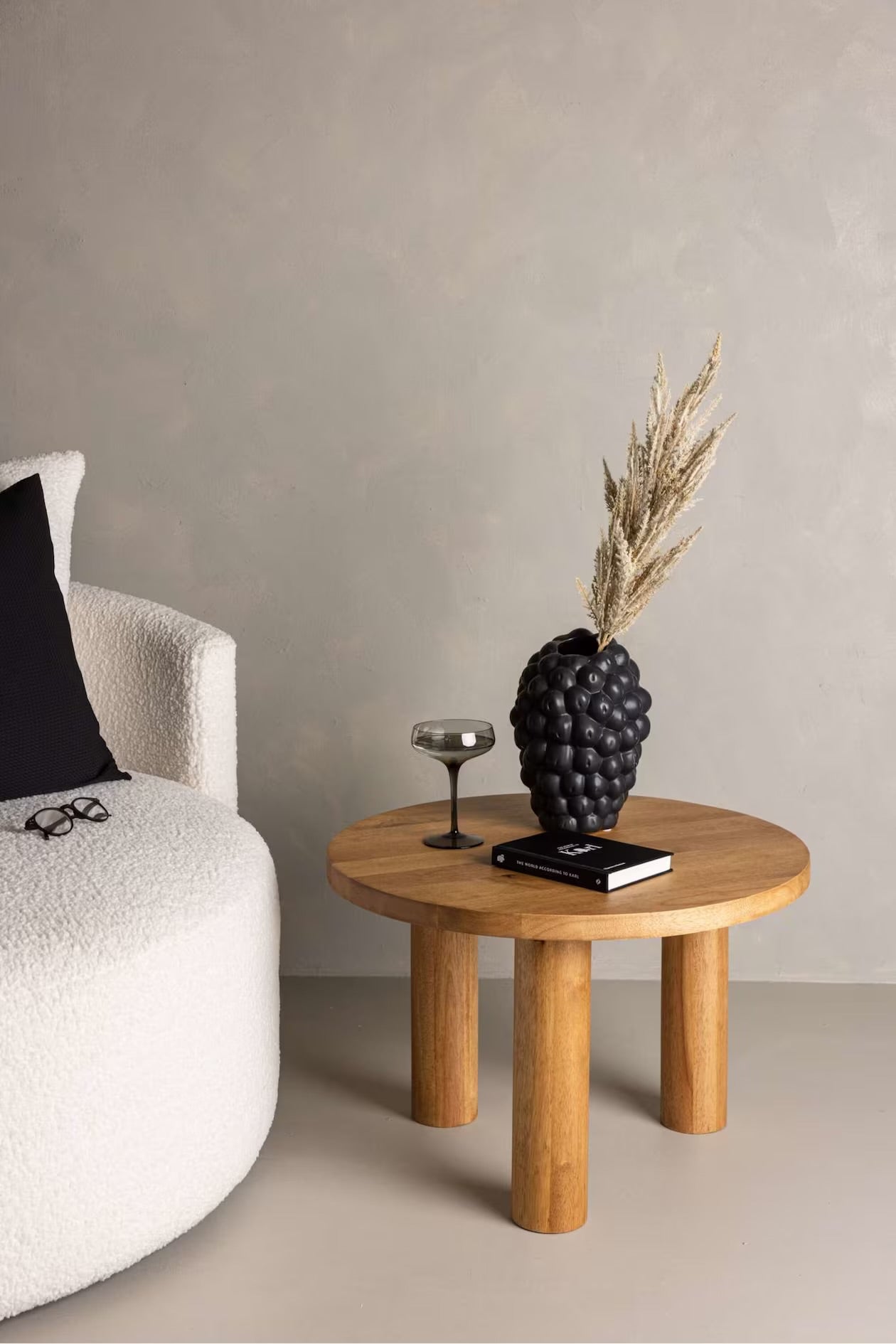 Ett nätt och enkelt soffbord som är lika snyggt som smart! Det här soffbordet tillhör serien Duxbury och har en stilren design med en rund toppskiva samt tre, marknära, cylinderformade ben; genomgående tillverkat i ekfärgat gummiträ. Placera på en mysig matta framför soffan och pryd ljus och vasar för en mer trivsam heminredning! Mått: ⌀60cm Höjd: 35cm