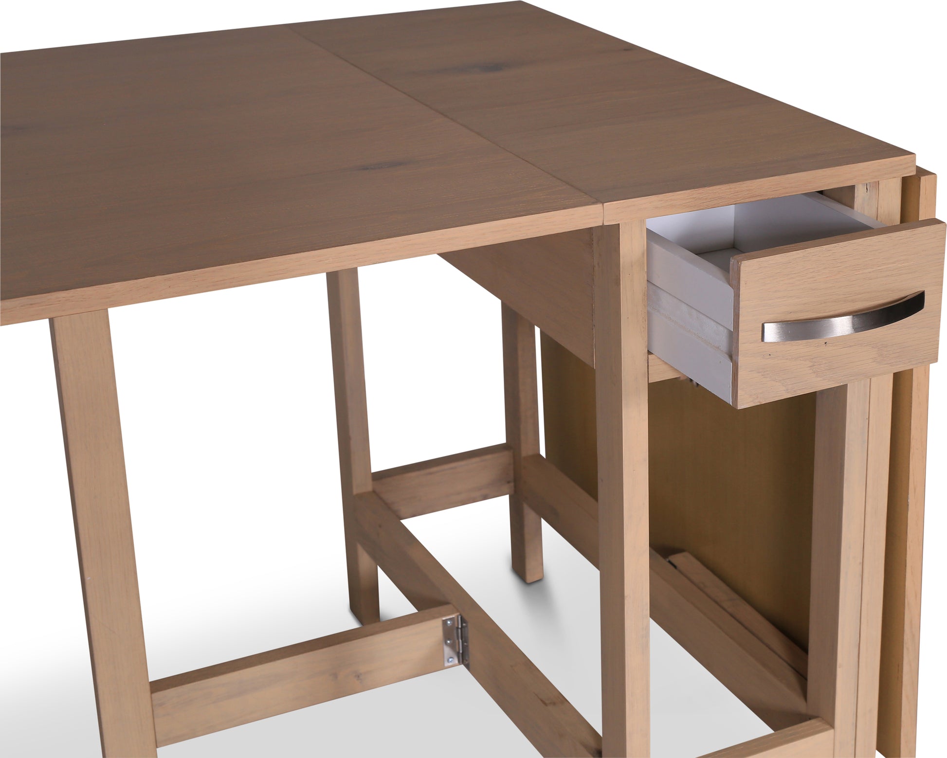 Ett stilrent och praktiskt slagbord i ljus ekfanér med två utdragbara lådor.