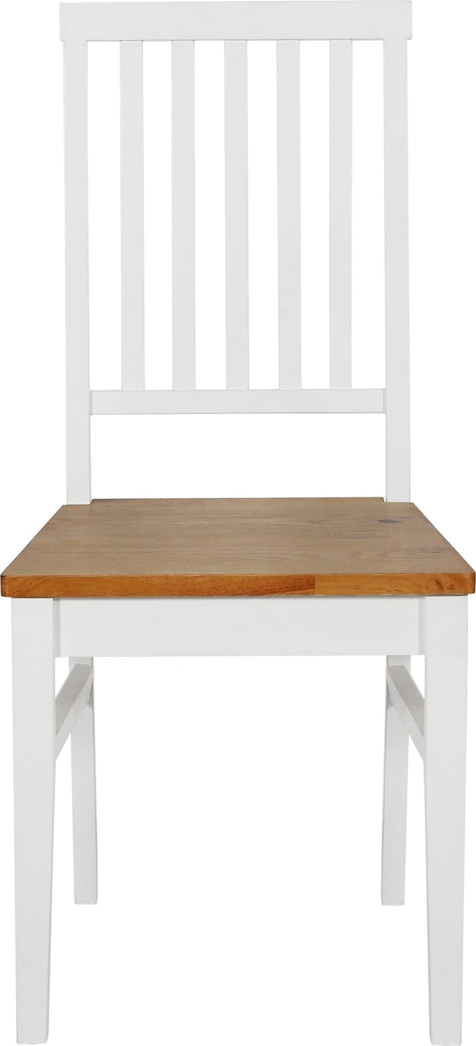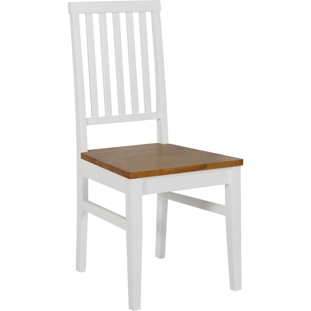 Klassisk matstol i massivt vitlackat trä med en sits av stryktålig oljad ekfanér. Passar till Fårö matbord.