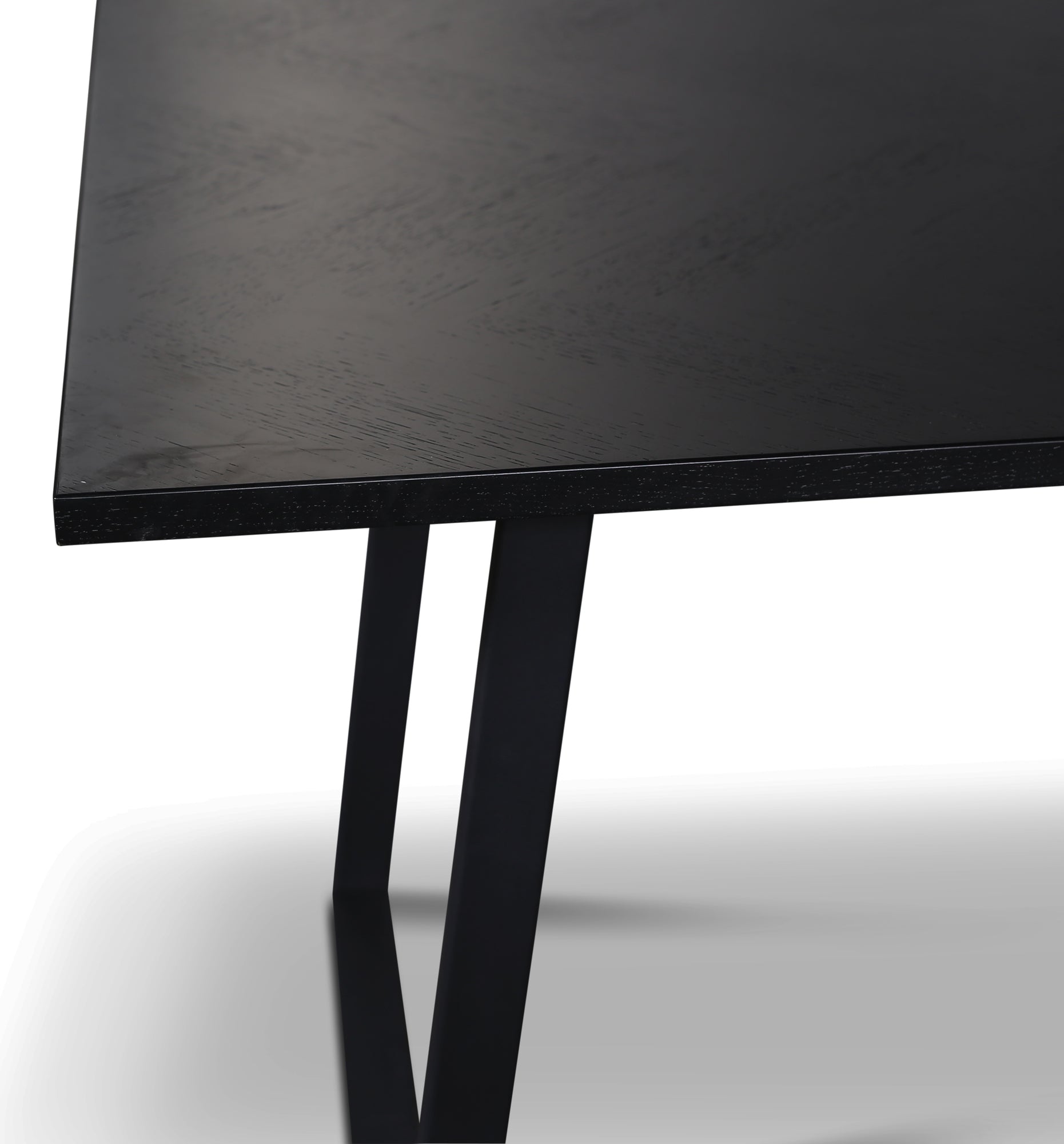 En toppskiva i svartbetsad ekfanér med fasade kanter som tillhör bordsserien Gordon. Kompletteras med underrede.