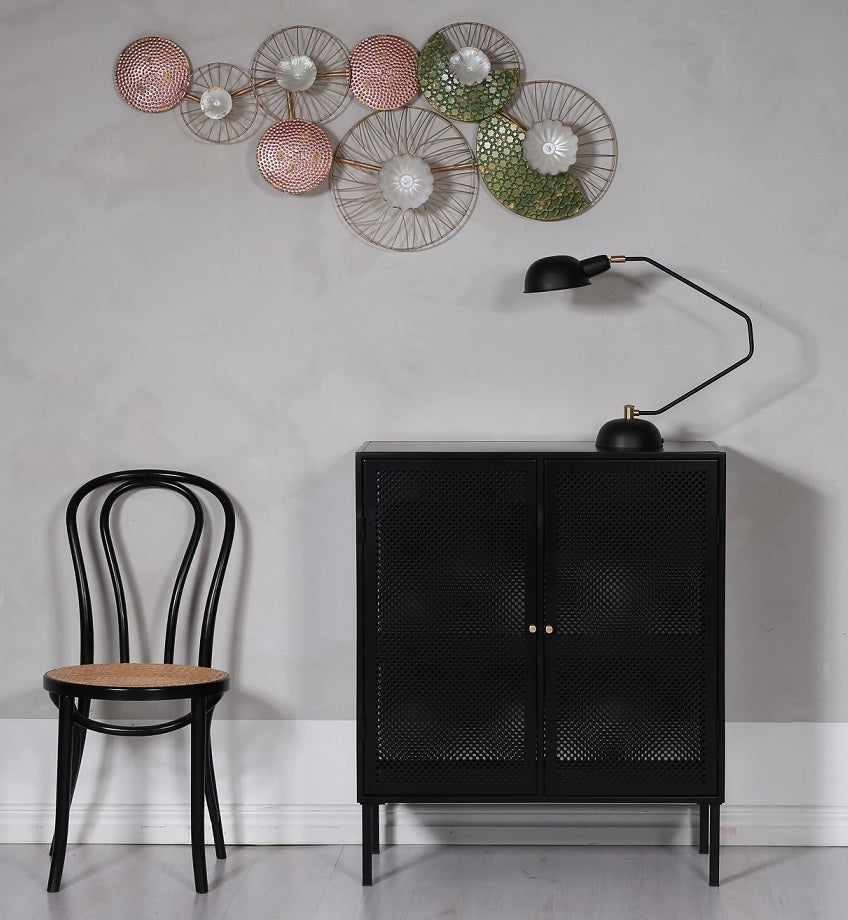 En stilig, blommig väggprydnad i metall som piffar upp hemmet.