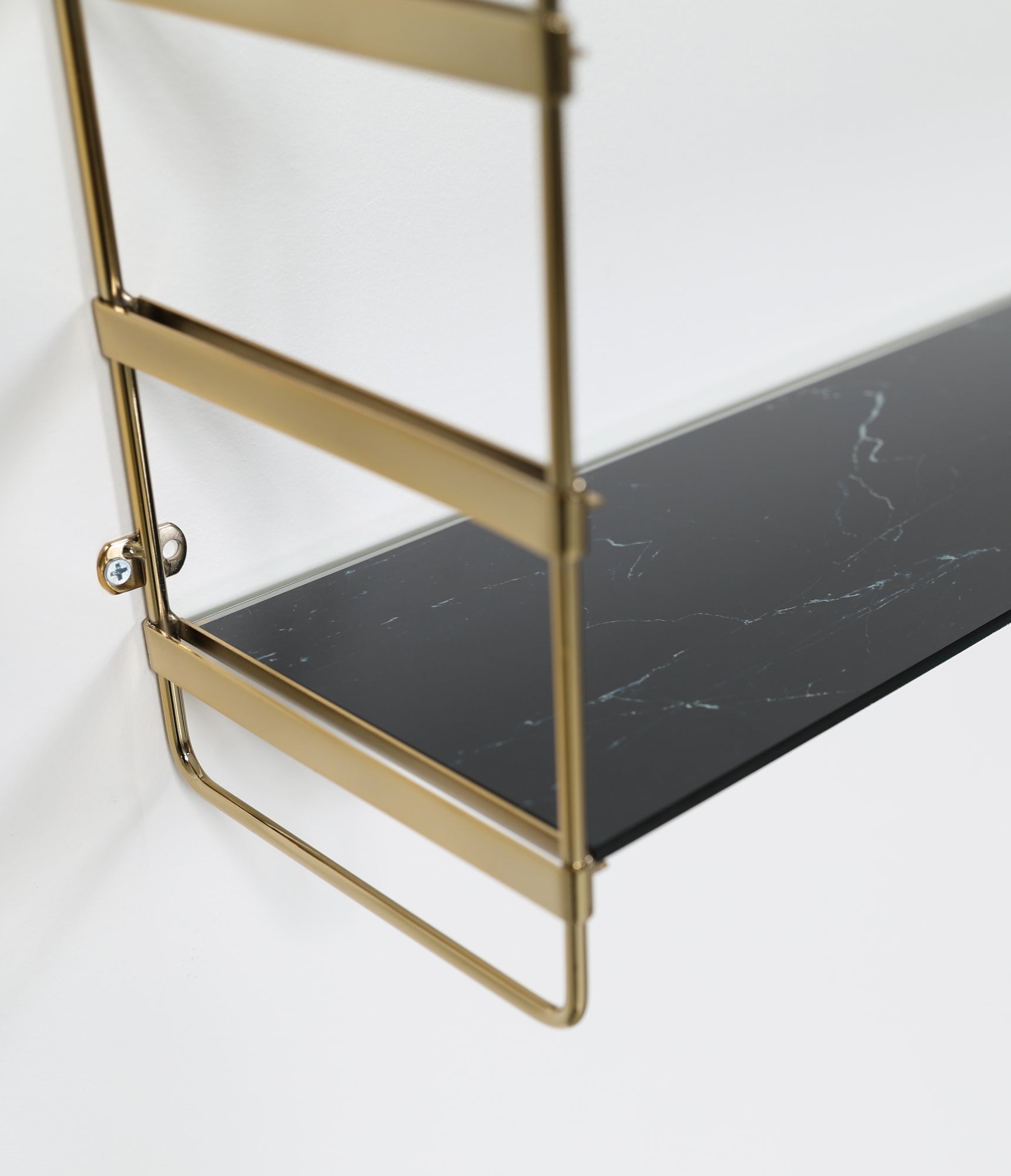 En stilren vägghyllestomme i mässing. Designad för att kombineras med hyllplan från Linus-serien.