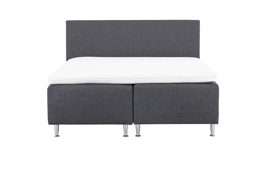 Klädd i stilfullt mörkgrått tyg blir Mesa en elegant blickpunkt i ditt sovrum. Benen i plast ger inte bara stabilitet, de är också en modern touch som kompletterar sängens design. Med möjlighet att välja mellan medium och fast fasthet, anpassar sig Mesa efter dina önskemål for ultimat komfort.