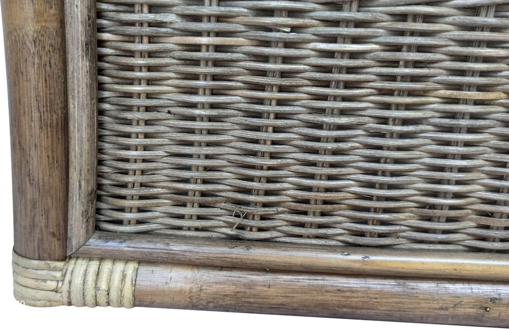En vägghängd sänggavel i äkta brun rotting som ger en naturlig och härlig känsla i sovrummet.
