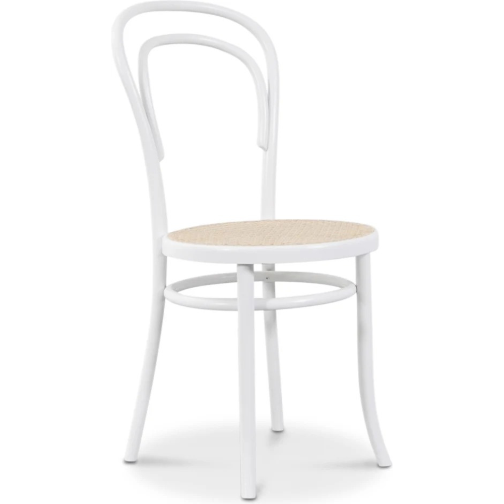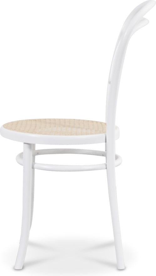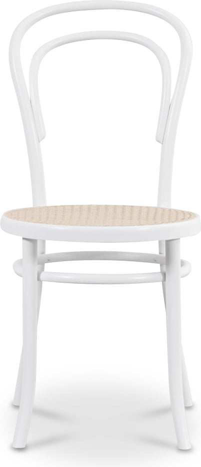 Världens mest kända stolklassiker, No 14, formgiven av Michael Thonet. Denna version har en vitlackad stomme och en sits i äkta rotting.