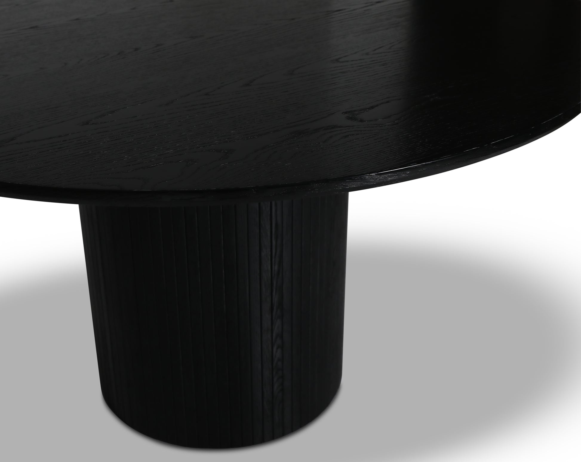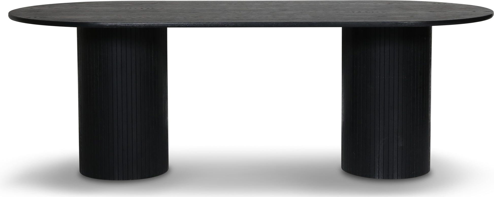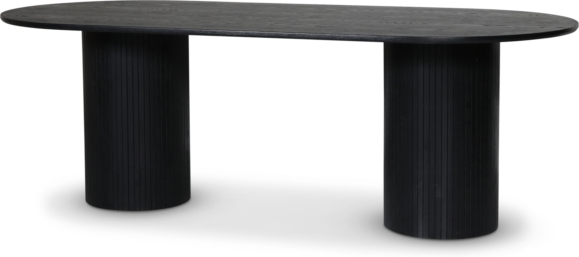 Ett modernt och stilrent matbord i svartbetsad askfanér med ett stabilt underrede. Levereras i två delar.