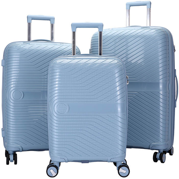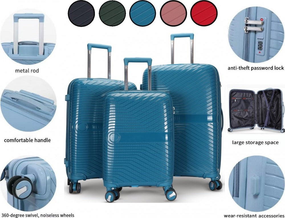 Set med tre resväskor i olika storlekar (S, M, L) i hårdplast med 3-siffrigt kodlås.