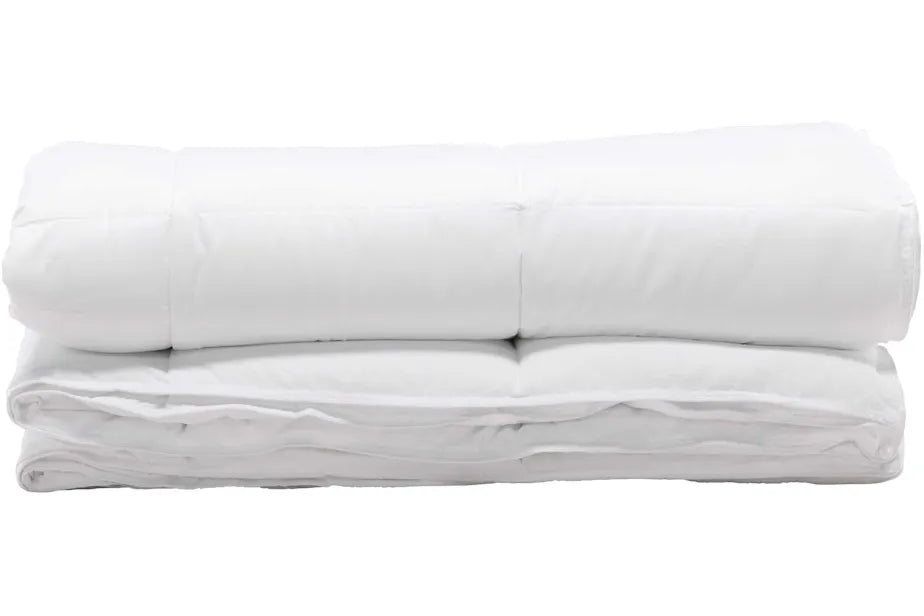 Ett härligt, fluffigt året-runt-täcke som kombinerar ett svalare och ett varmare täcke. Känslan påminner om äkta dun.