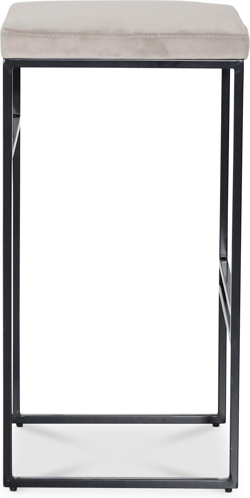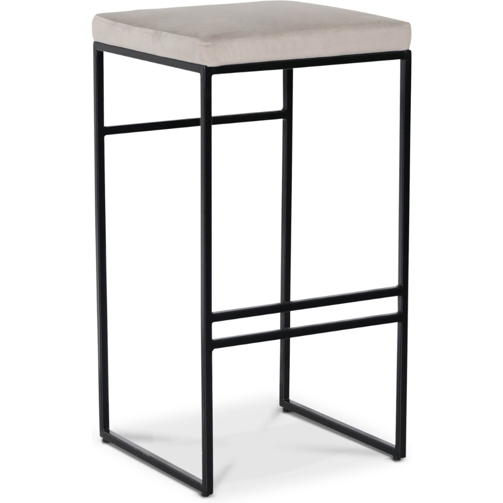 En stilig och modern barstol med en sits i gråbeige sammetstyg och pulverlackerade svarta ben.