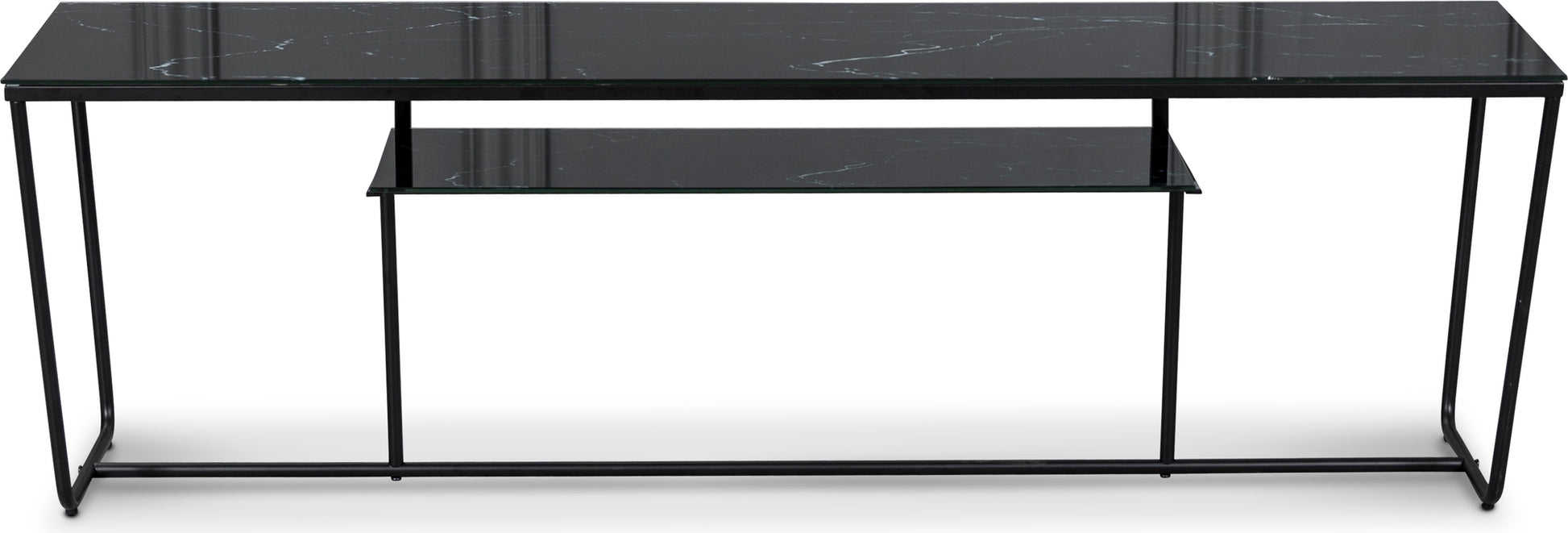 Ett underrede i svart metall, designat för att skapa en TV-bänk tillsammans med skivor från Stella-serien.