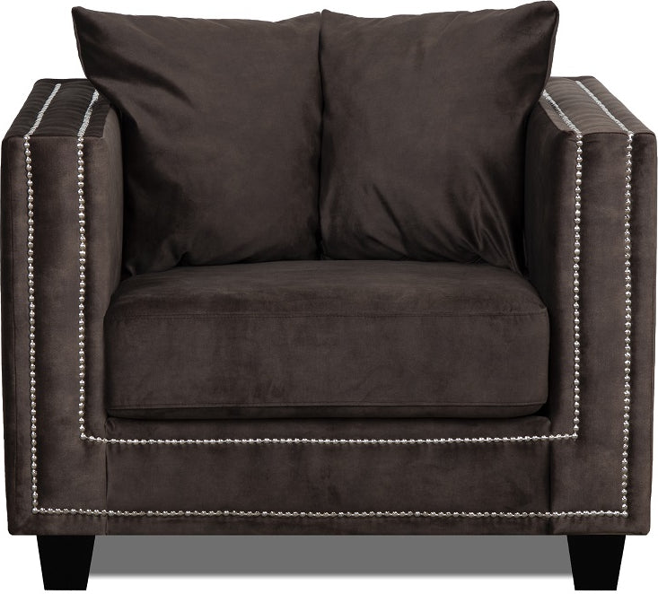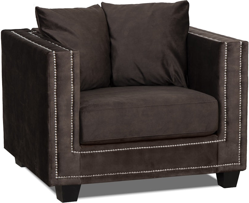 Tempel fåtölj med nitar i brun sammet