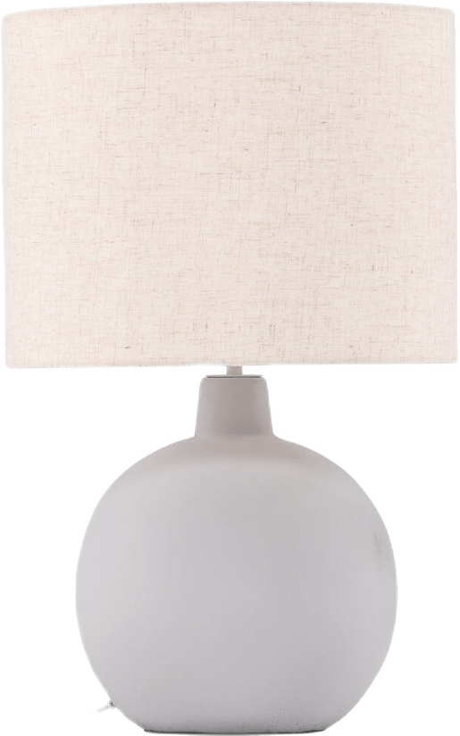 Torcello är en klassisk och tidlös bordslampa som passar bra in i de flesta hem och inredningsstilar! Lampfoten har en rundad form och är tillverkad i vit betong vilket passar perfekt till den gråa lampskärmen i linne-tyg. Lampan har en stilren och enkel design som passar att placera nästan vart som helst där extra belysning eller dekoration behövs.Mått51x32x32 Ljuskälla ingår ej. Sockel E27. 25 Watt IP20. Plast sladd, längd 150cm