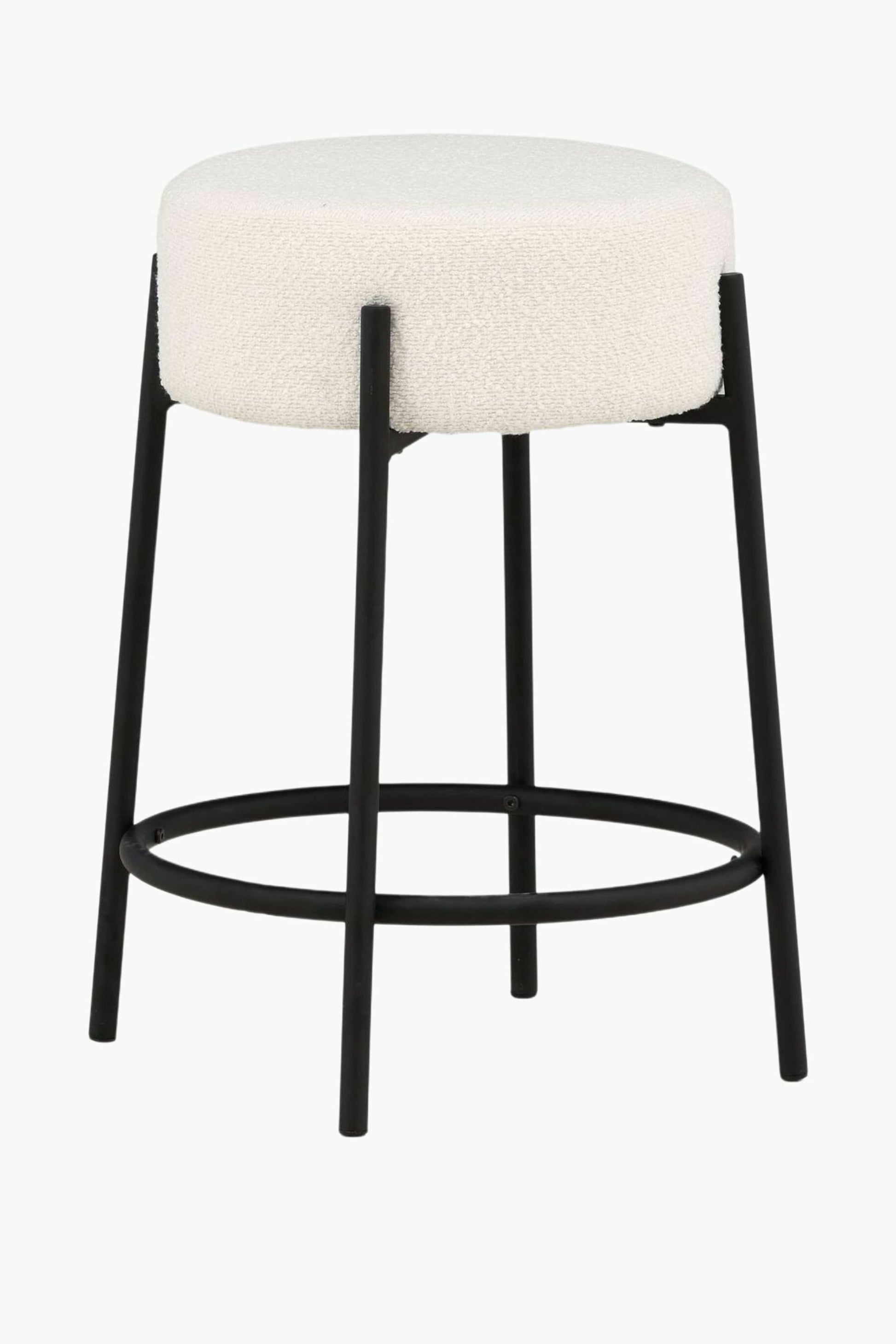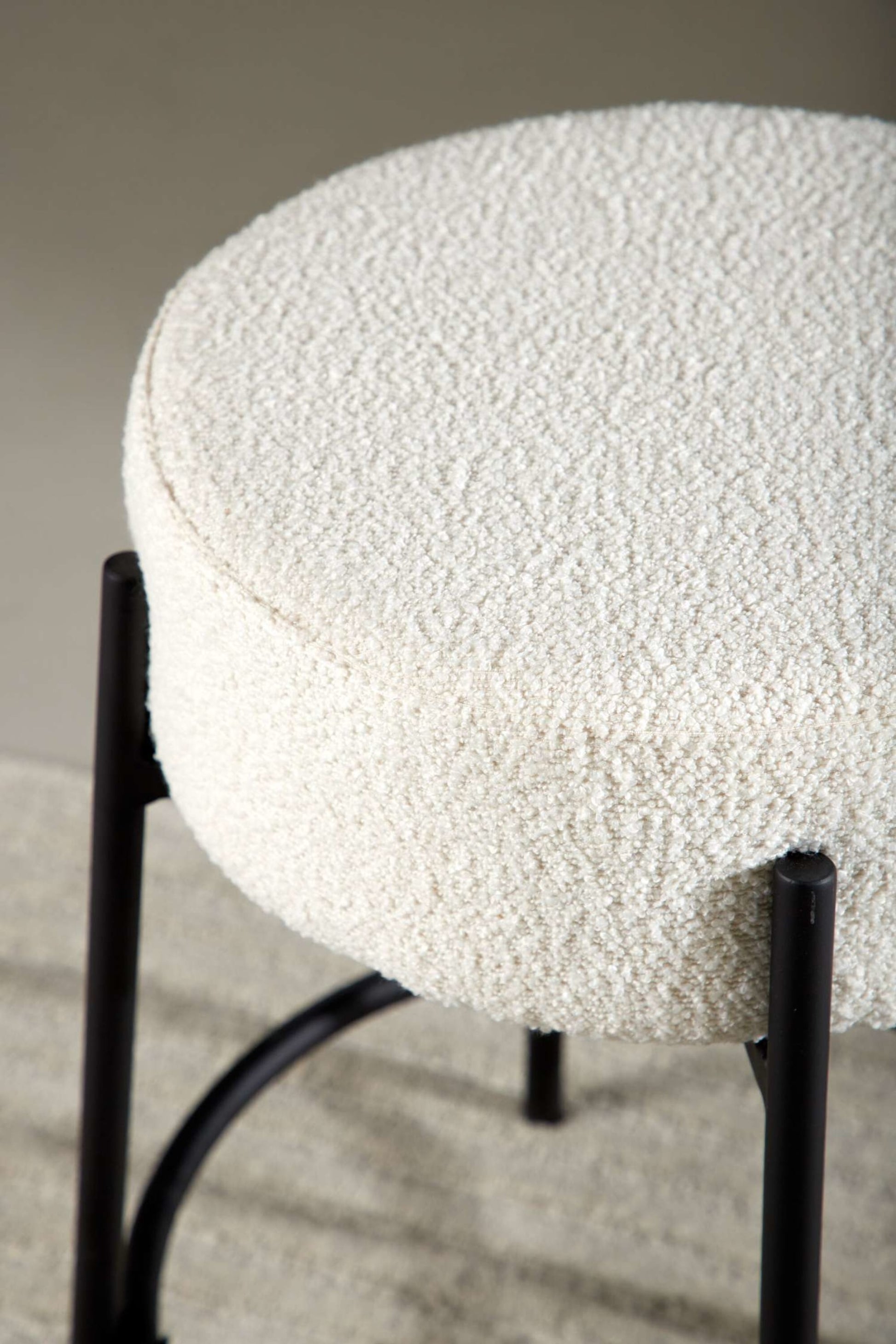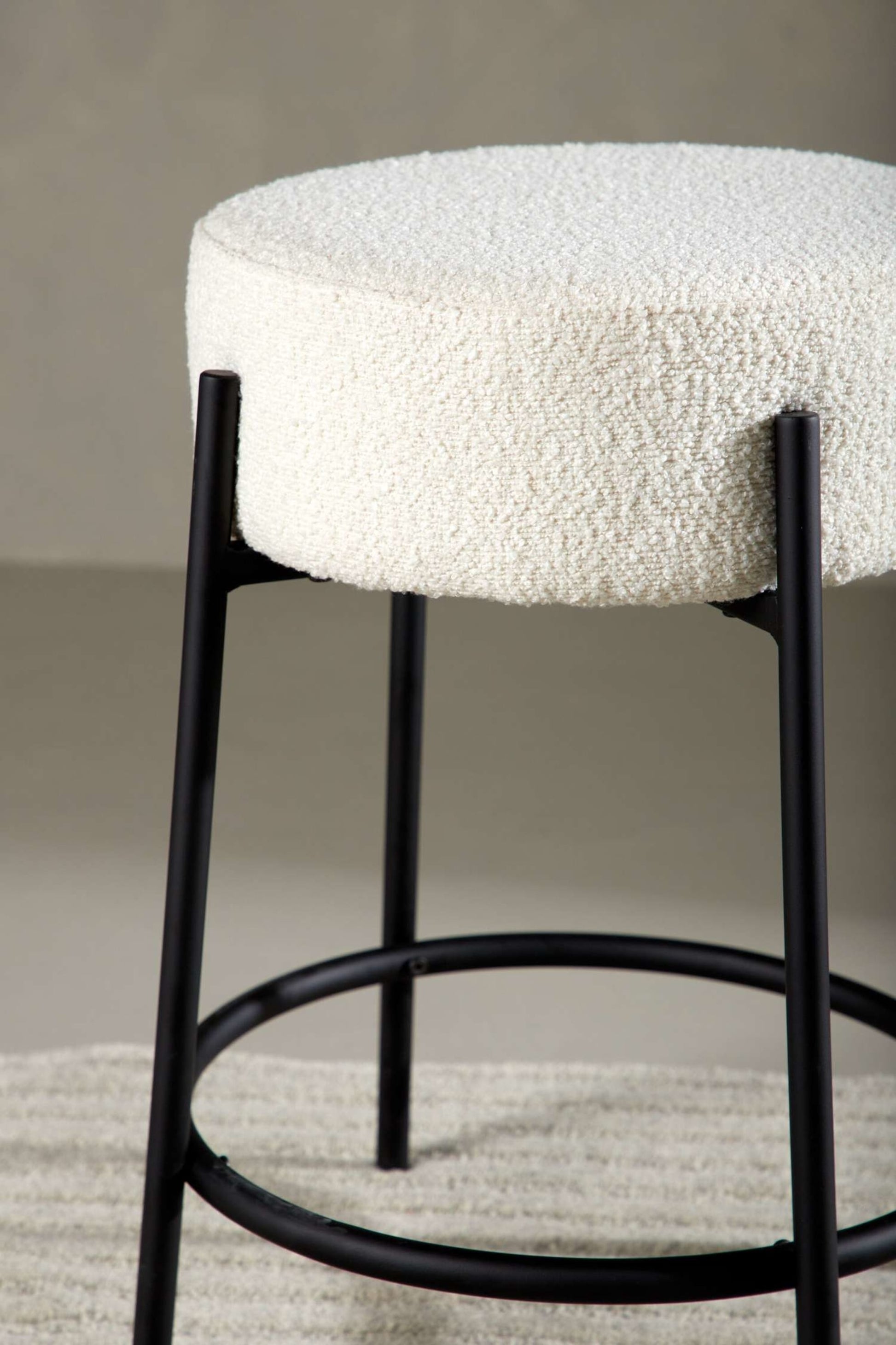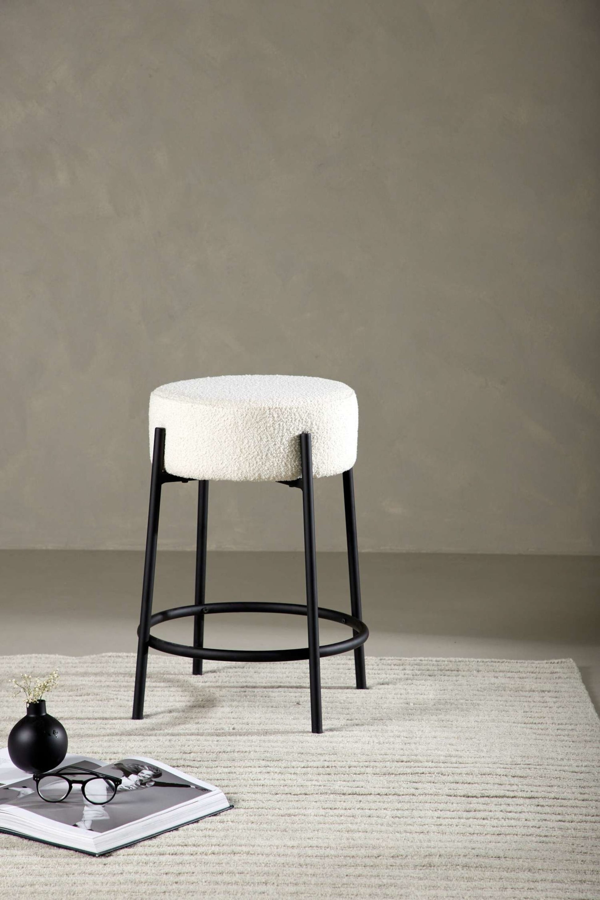 Tuscon barstol gör ett imponerande intryck och passar perfekt i det moderna hemmet! Designen är trendsäker med en cylinderformad sits i boucletyg och ben i stål med integrerat fotstöd. Lika bekväm som iögonfallande gör dessa barstolar sig lika bra vid bardisken i köket som kring det mindre matbordet. Höj stilnivån i ditt hem! Mått: Höjd: 60cm Bredd: 50cm Djup: 50cm