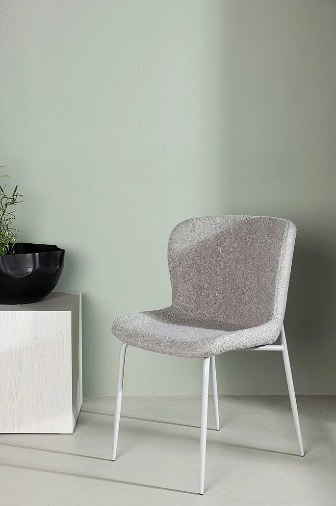 Modesto - vår populära matstol som är lika trendsäker som bekväm! Skapa en inbjudande atmosfär i hemmets hjärta med den här mjuka matstolen i skandinavisk design. Stolen är helklädd i lurvigt tyg med stilrent smala stolsben i metall. Den lätt rundade ryggen och stoppade sittdynan ger extra komfort och förlänger trivsamma måltider kring matbordet. Det ska kännas skönt att slå sig ner för en god måltid!