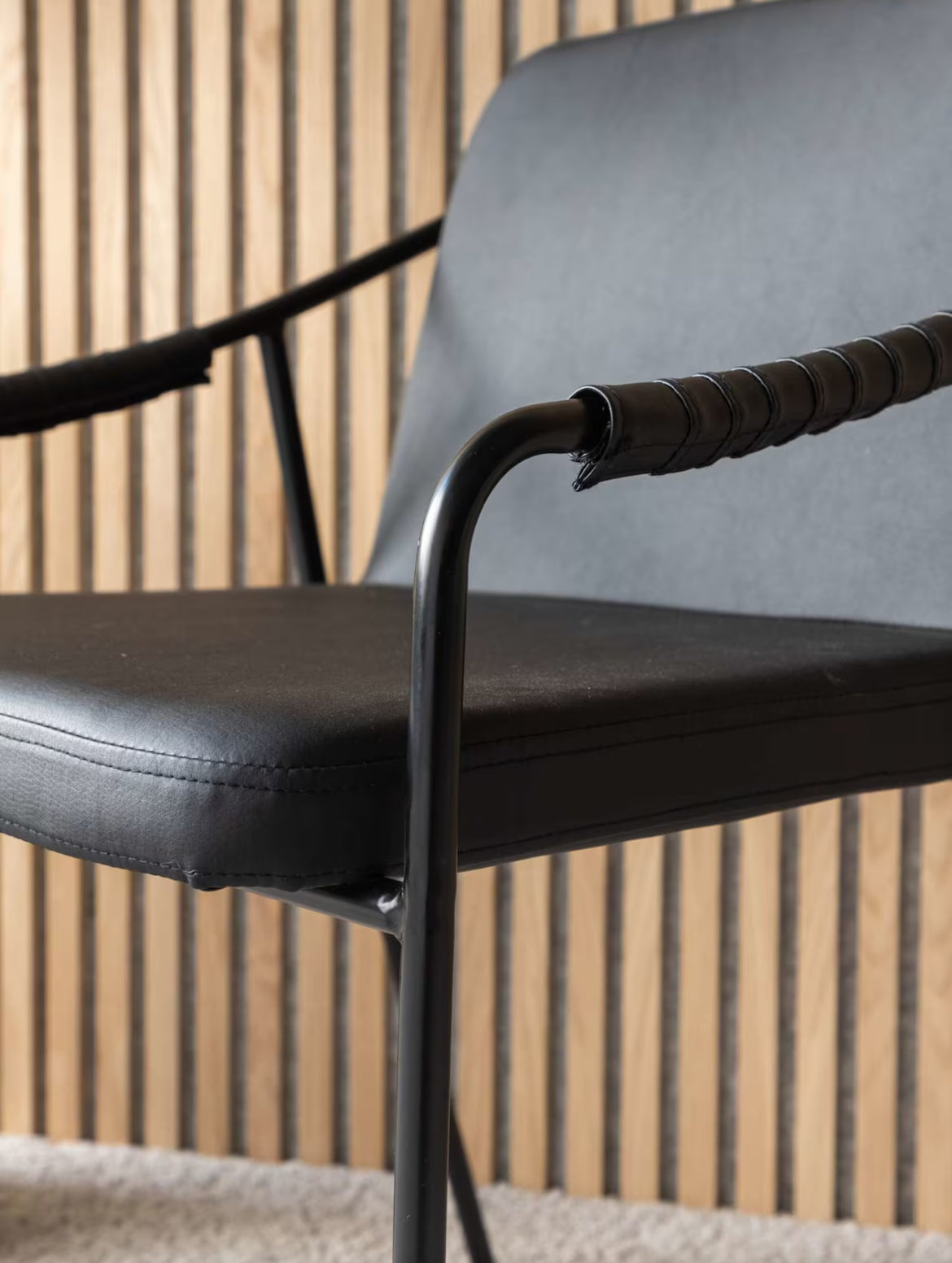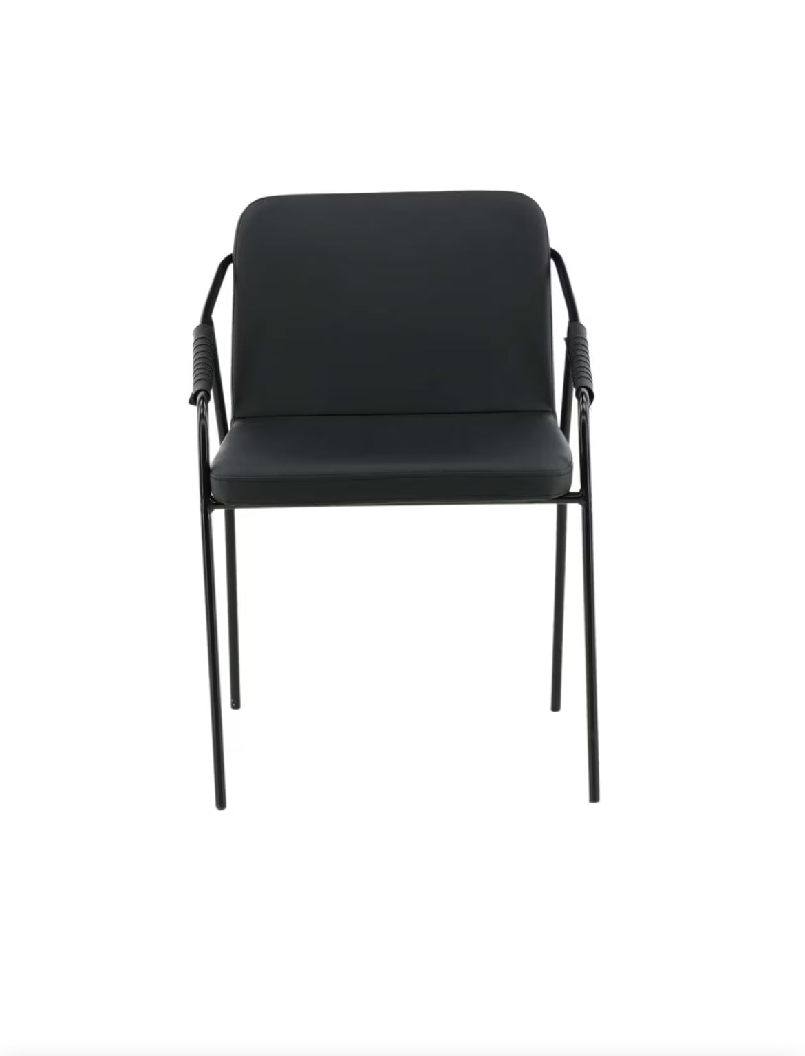 A chair dream in a consistent color - perfect for the living room or kitchen! The Twist dining chair features a seat and back in black polyurethane leather and polyester, along with iron chair legs. The bold design and trendy style give you a dining chair that elevates the ambiance for every meal and takes your interior design to the next level! Dimensions: 77x59x53.