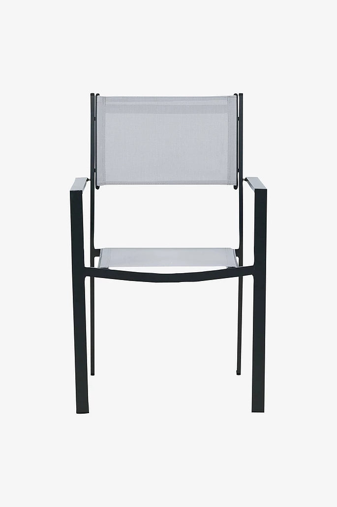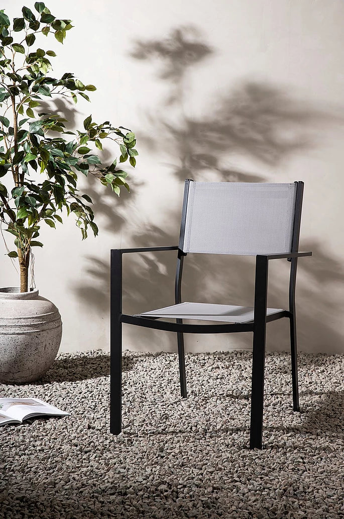 Copacabana i sin robusta och stilrena design gör sig alldeles ypperligt tillsammans med andra utemöbler. Dess svarta aluminiumkonstruktion och slitstarka grå sits i textilene ger dig en praktisk matstol som håller över tid. Den är stapelbar, för smidig förvaring. Njut av trivsamma måltider i sommar!
