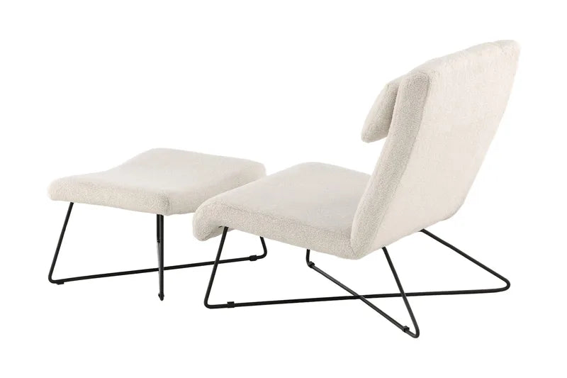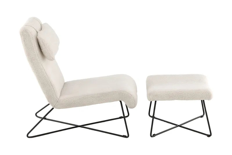 Skapa ett stilsäkert blickfång i ditt hem med den här smakfulla och eleganta fåtöljen från serien Laconia! Fåtöljen har en tillhörande fotpall och nackkudde för extra komfort och den genomtänkta Skandinaviska helhetsdesignen är lika lyxig som imponerande. Sitsen och nackkudden är tillverkad i vitt boucletyg och den smala stålkonstruktionen i svart kulör är helt i linje med trenderna. Placera intill soffan för att ge utrymme för extra sittplats eller solitär i favorithörnan!
