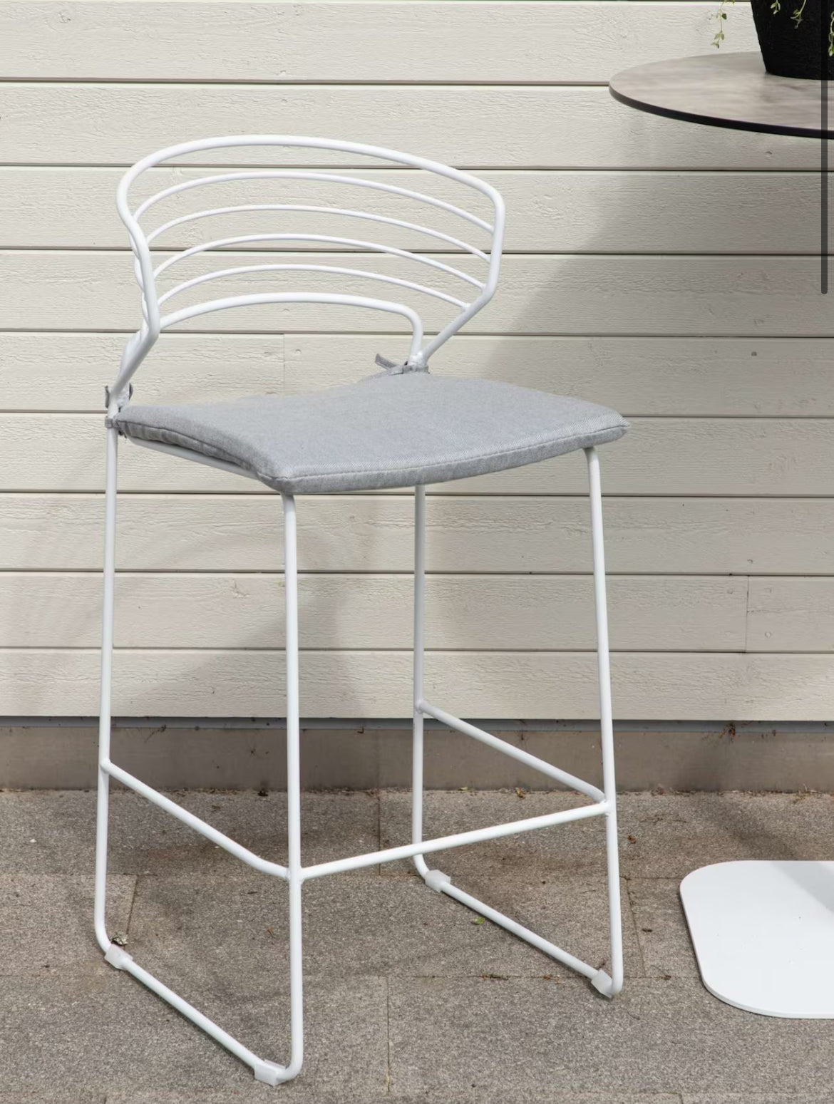 Barstolen från serien Milano gör ett imponerande intryck och kommer skapa ett modernt blickfång på din uteplats! Den skandinaviska designen är trendsäker med sina mjuka nordiska former och minimalistiska stuk. Sitsen är mjukt stoppad i polyestertyg och benstommen är stilrent smal i stål med ett lägre ryggstöd samt integrerat fotstöd för extra komfort. Lika bekväm som iögonfallande gör dessa barstolar sig utmärkt vid barbordet på altanen! Mått: Djup: 48cm, Höjd: 94cm, Bredd: 47cm