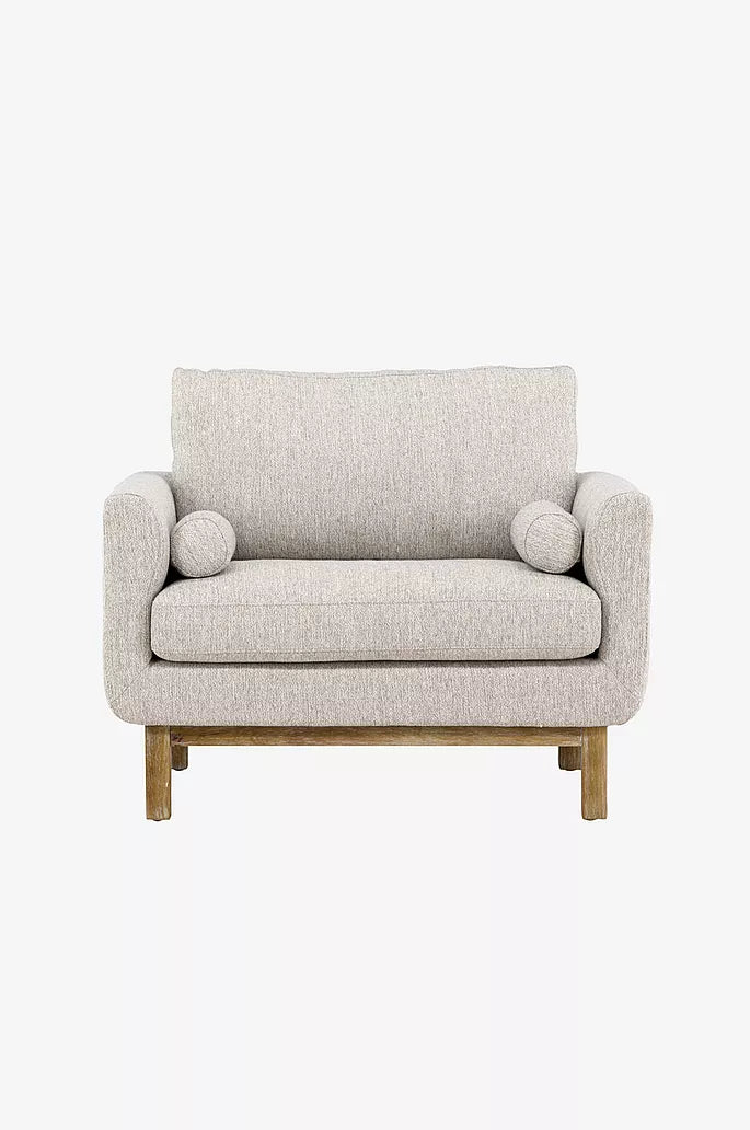 Olympos-fåtöljen är mer än bara en möbel - det är en elegant följeslagare som också erbjuder en tröstande omfamning som du kommer att älska att sjunka ner i efter en lång dag! Med sin eleganta beige polyesterklädsel och dekorativa ben i gummiträ tar den här tidlösa fåtöljen komfort till en ny dimension. De rundade armstöden och de medföljande kuddarna är inte bara en snygg detalj utan bidrar också till en bekvämare sittupplevelse. Det eleganta utseendet gör att den kan stå för sig själv som en snygg och funktionell del av din inredning, samtidigt som den kan kombineras med soffan från samma serie för att skapa en komplett uppsättning med gott om sittplatser. Så koppla av, omfamna komforten och låt den här smakfulla fåtöljen bli en ny favorit i ditt vardagsrum!