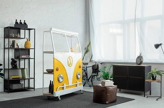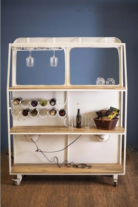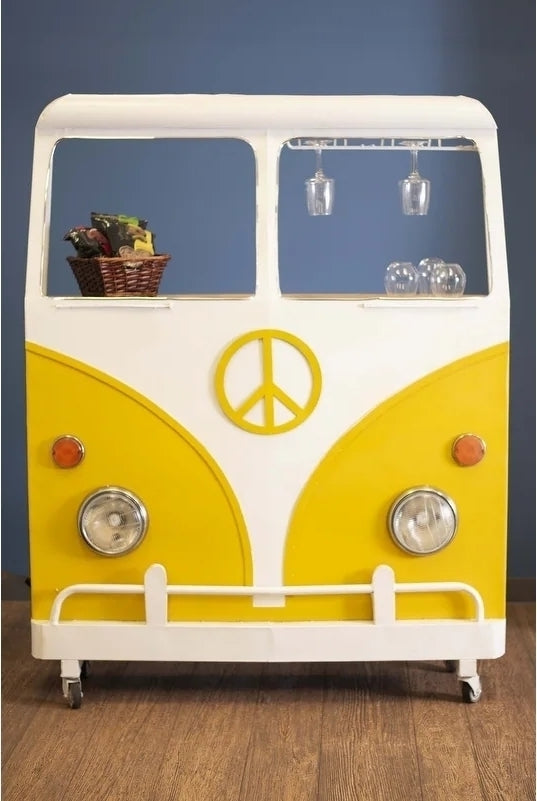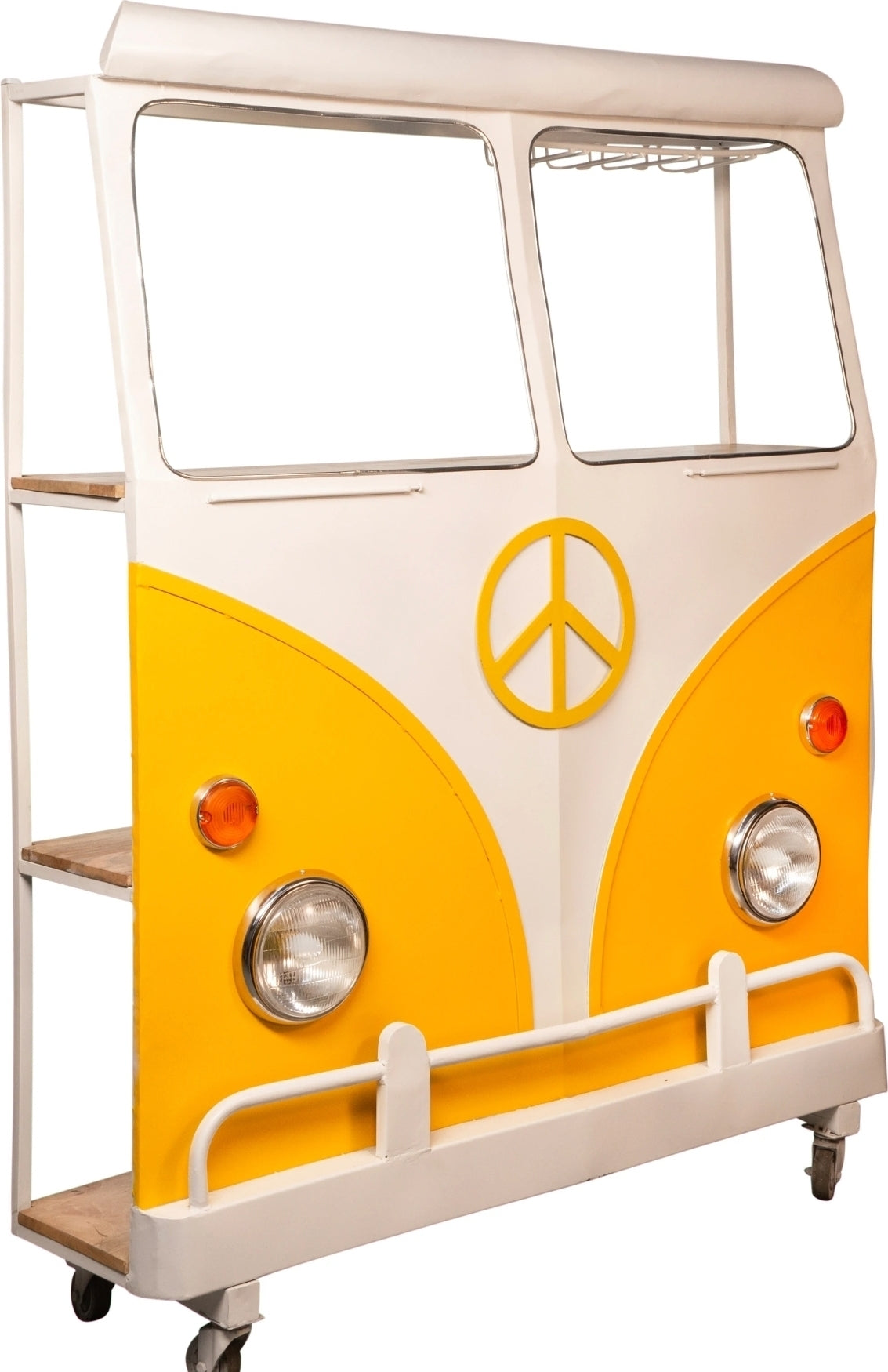 En unik och tuff bardisk designad som fronten på en klassisk folkabuss. Den har en toppskiva i trä och fungerande strålkastare som belysning.